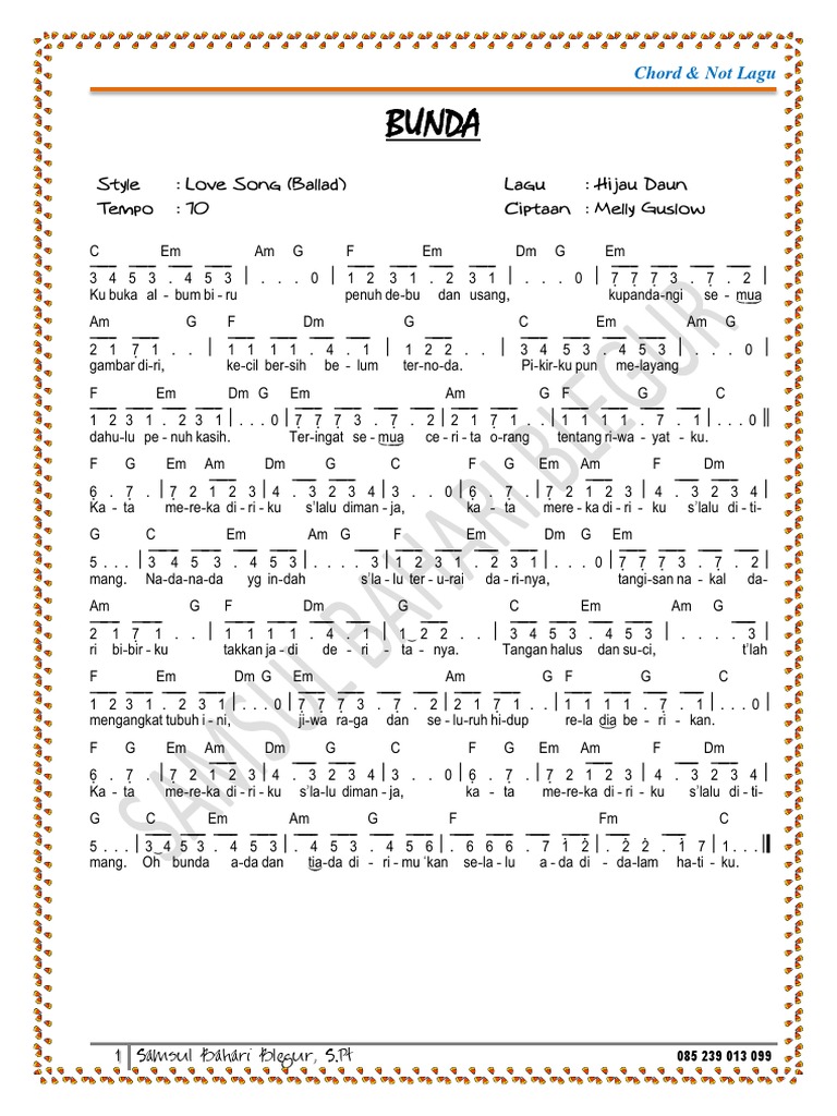 Check the best collection of Kunci gitar lagu bunda hijau daun for desktop, laptop, tablet and mobile device. You can download them free. Chord Dan Not Angka Lagu Bunda Hijau Partitur Not Angka