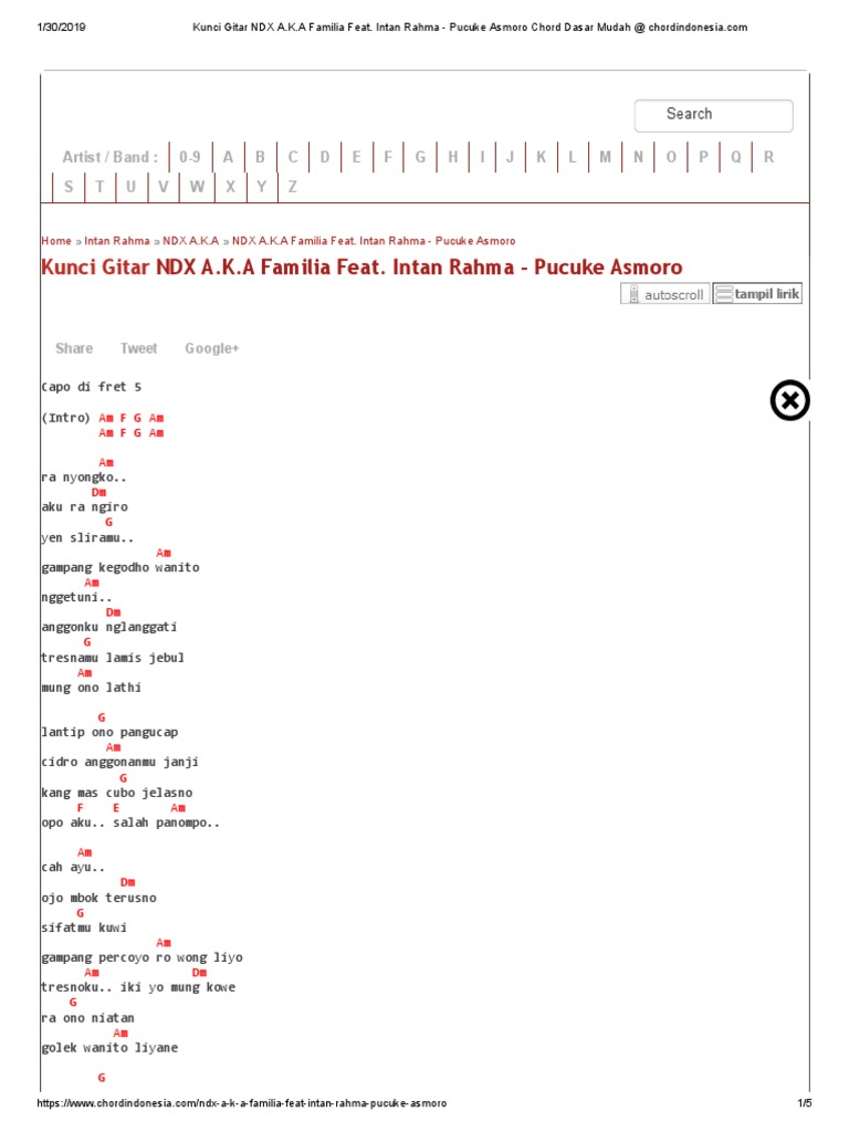 Check the best collection of Kunci gitar lagu cidro janji for desktop, laptop, tablet and mobile device. You can download them free. Kunci Gitar Ndx A K A Familia Feat Intan Rahma Pucuke Asmoro