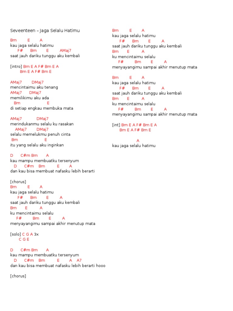 Check the best collection of Kunci gitar lagu cinta segitiga chordtela for desktop, laptop, tablet and mobile device. You can download them free. Chord Seventeen Jaga Selalu Hatimu Chordtela
