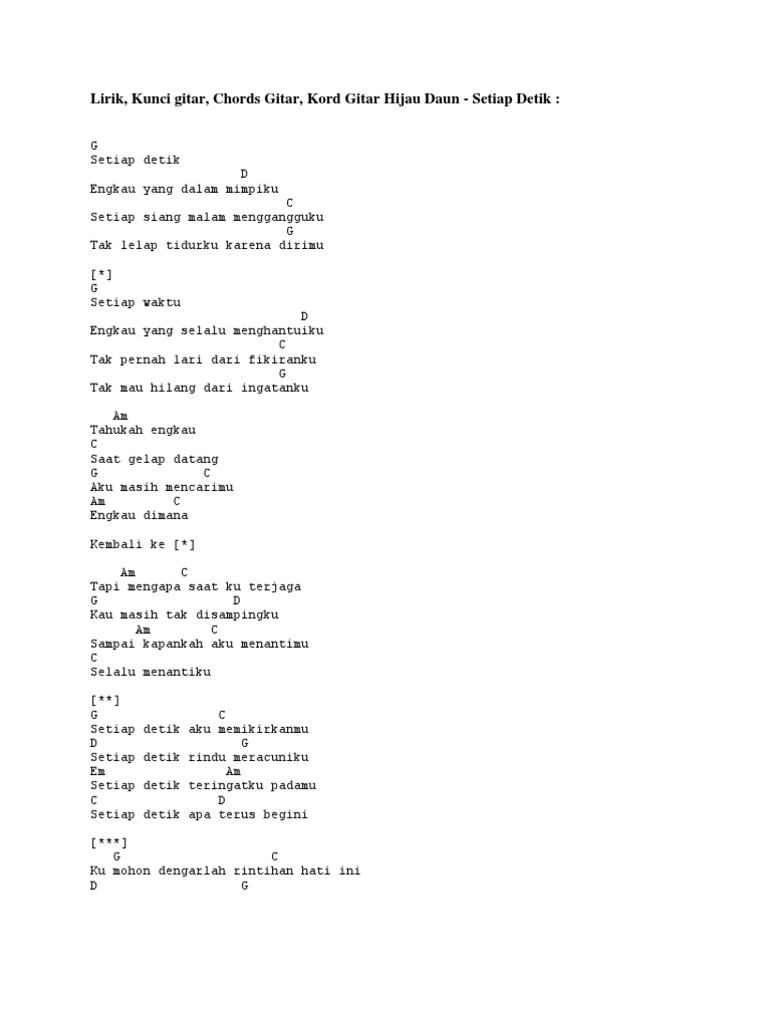 Kunci Gitar Hijau Daun Suara Pop Indonesia Chord Gitars