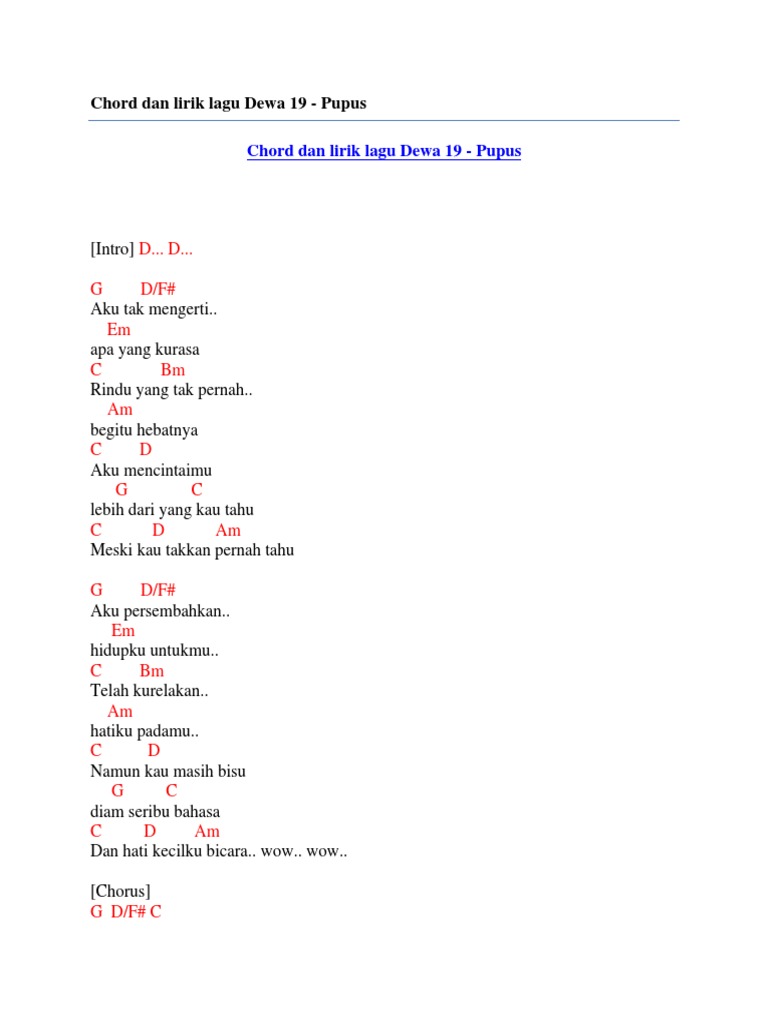 Check the best collection of Kunci gitar lagu dewa pupus for desktop, laptop, tablet and mobile device. You can download them free. Lirik Lagu Dewa 19