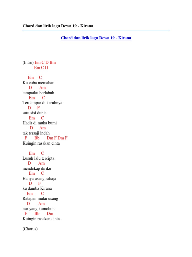 Check the best collection of Kunci gitar lagu dewa for desktop, laptop, tablet and mobile device. You can download them free. Chord Dan Lirik Lagu Dewa 19 Kirana