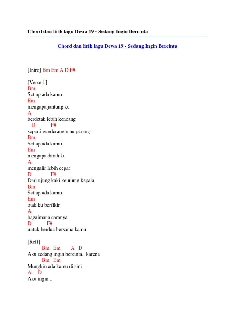 Check the best collection of Kunci gitar lagu dewa for desktop, laptop, tablet and mobile device. You can download them free. Chord Dan Lirik Lagu Dewa 19 Sedang Ingin Bercinta