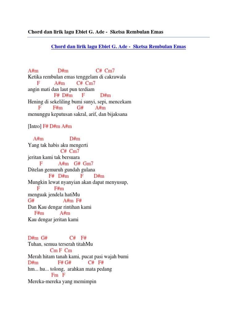 Check the best collection of Kunci gitar lagu ebiet for desktop, laptop, tablet and mobile device. You can download them free. Chord Dan Lirik Lagu Ebiet G Ade Sketsa Rembulan Emas