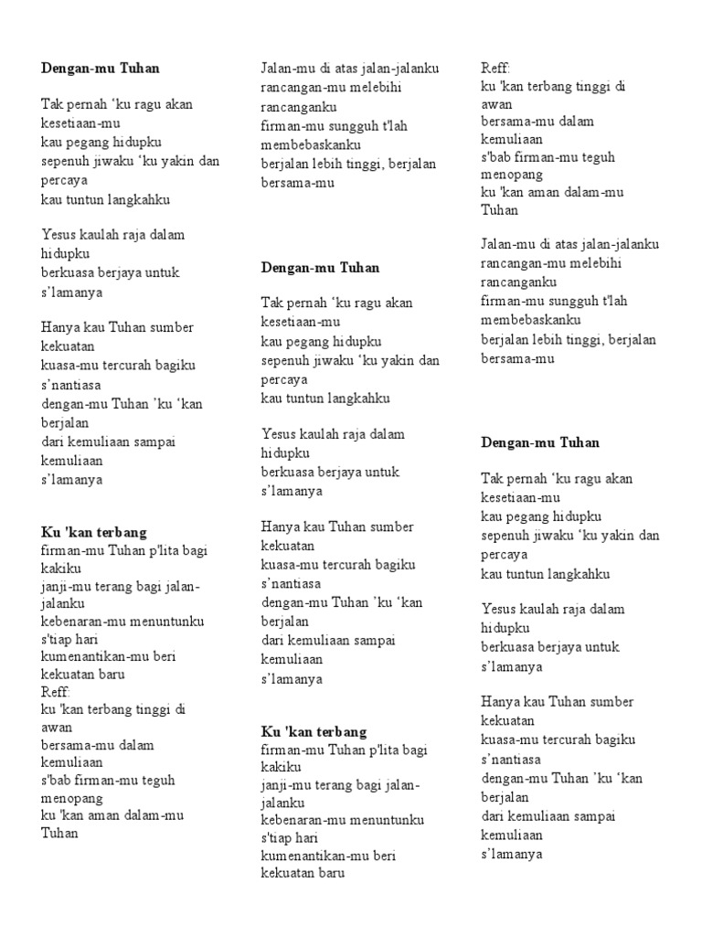 Check the best collection of Kunci gitar lagu firmanmu tuhan plita bagi kakiku for desktop, laptop, tablet and mobile device. You can download them free. Ku Kan Terbang Madah Rohani Lyric Chord Christian Song