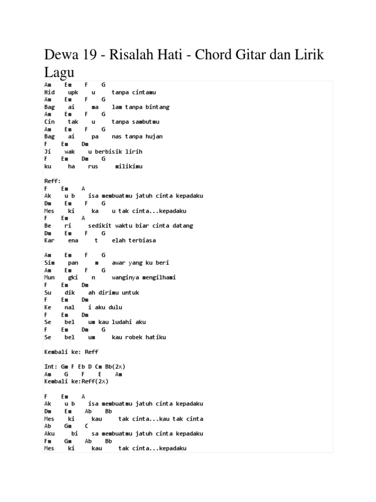 Chord Gitar Dan Lirik Lagu Dewa 19 Risalah Hati