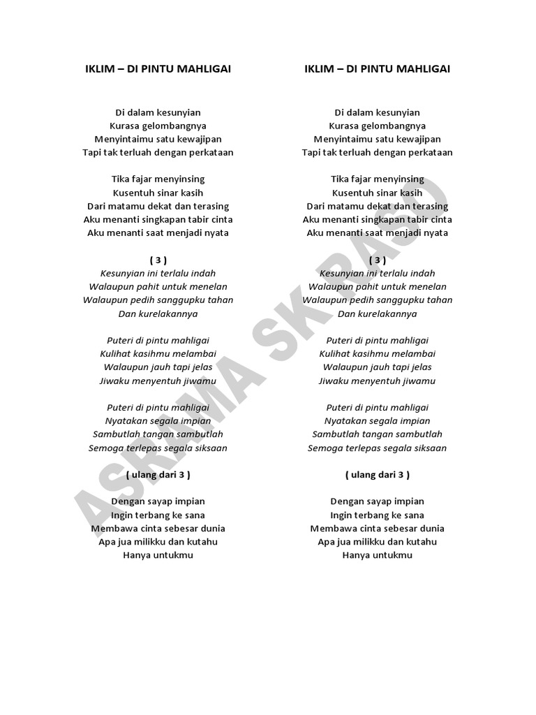 Daftar Lirik Lagu Iklim Puteri Di Pintu Mahligai Download