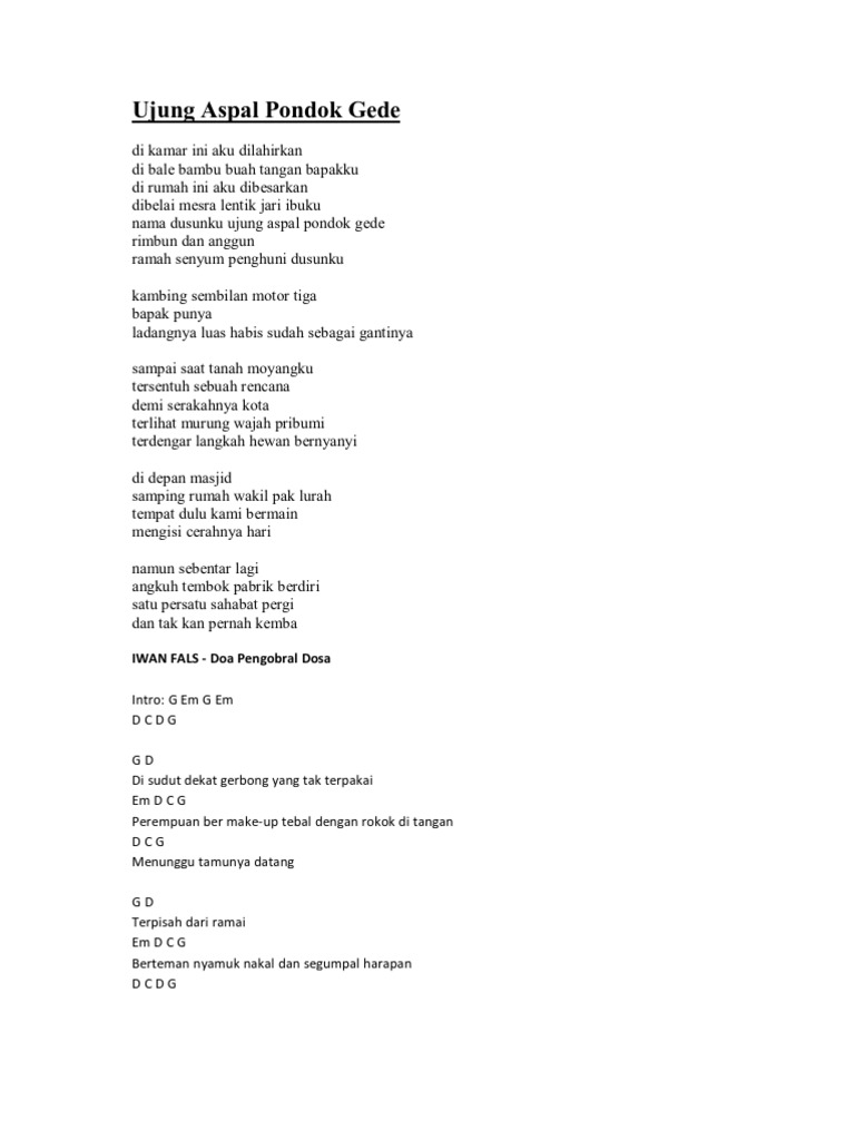 Check the best collection of Kunci gitar lagu iwan fals ujung aspal pondok gede for desktop, laptop, tablet and mobile device. You can download them free. Chord Lagu Ujung Aspal Pondok Gede Kumpulan Ilmu Dan Pengetahuan