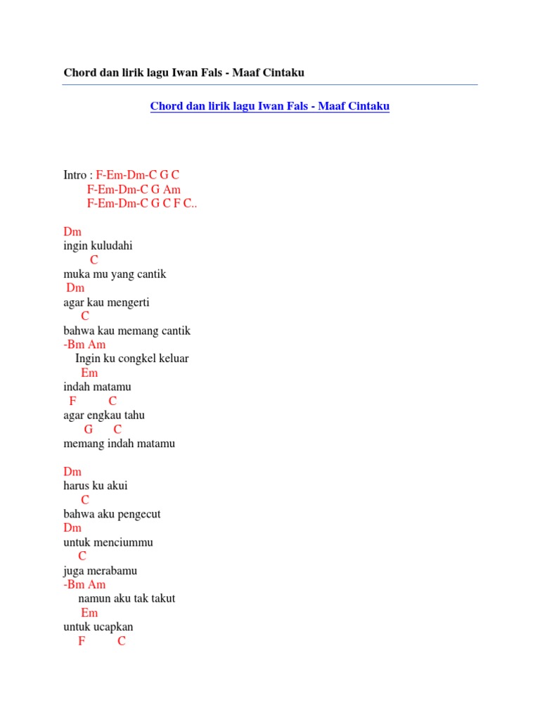 Check the best collection of Kunci gitar lagu iwan fals for desktop, laptop, tablet and mobile device. You can download them free. Chord Dan Lirik Lagu Iwan Fals Maaf Cintaku