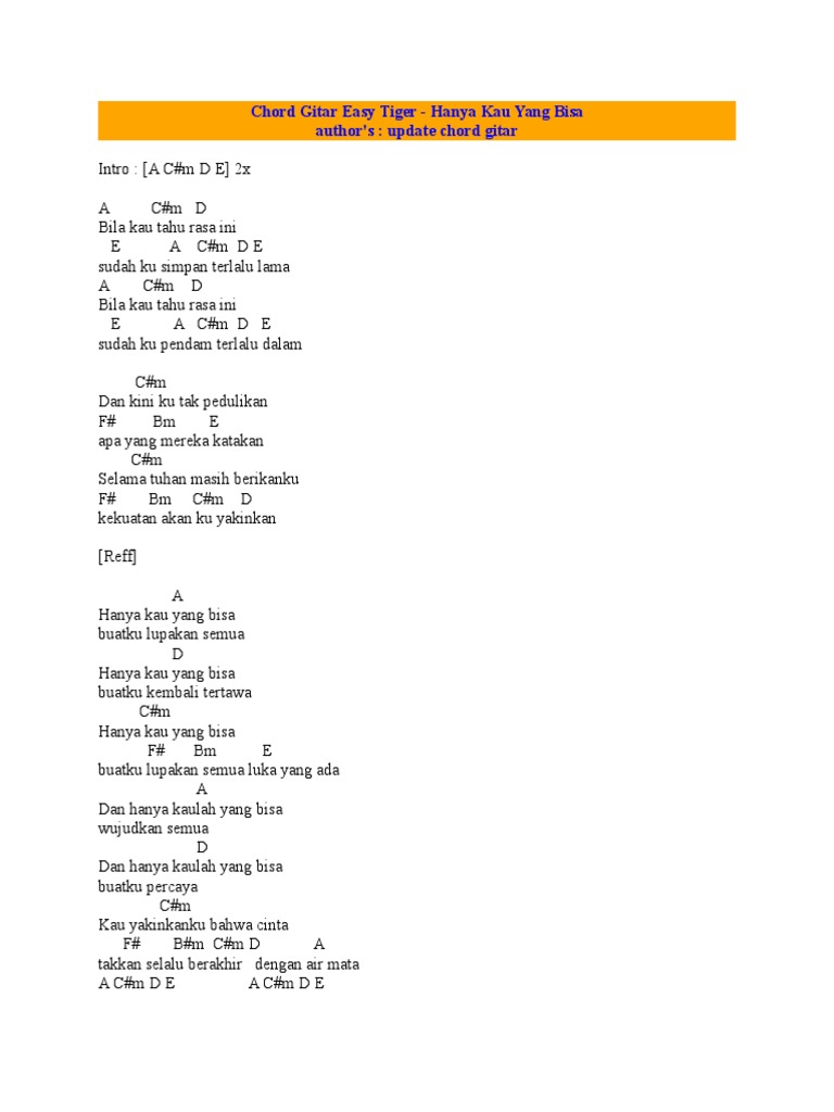 Check the best collection of Kunci gitar lagu lama sudah ku menanti for desktop, laptop, tablet and mobile device. You can download them free. Chord Gitar Easy Tiger