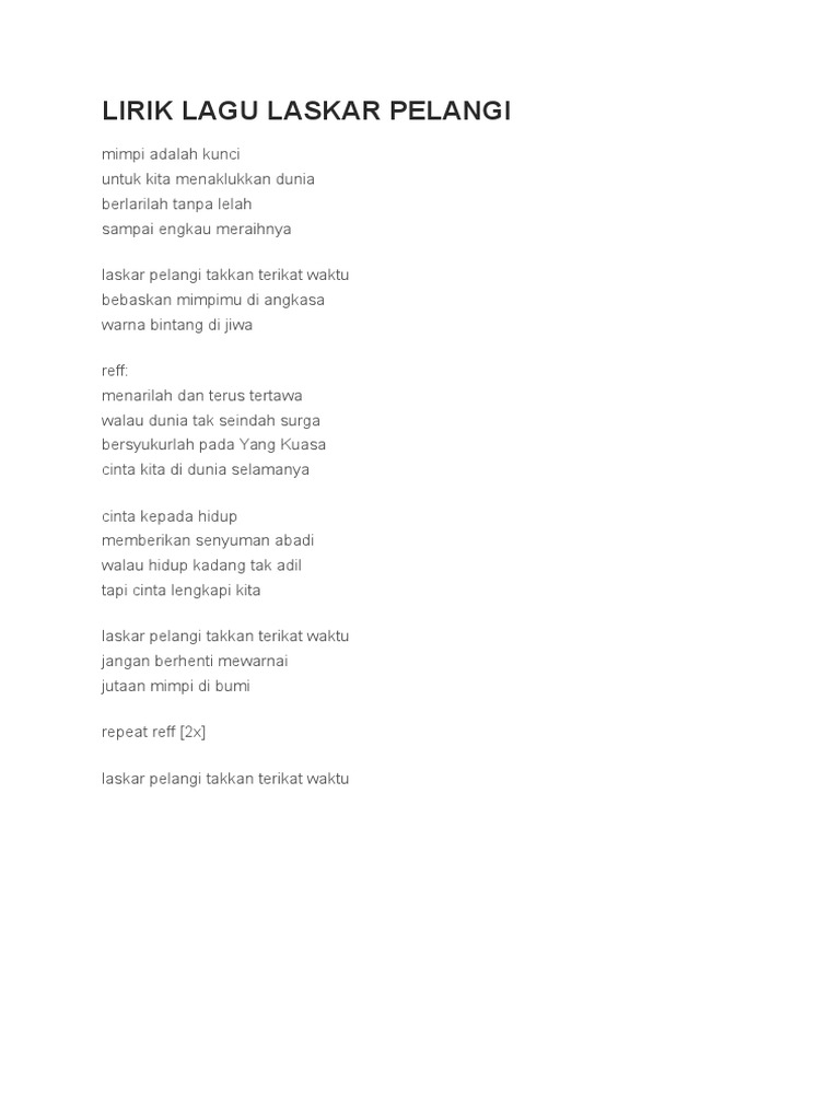 Check the best collection of Kunci gitar lagu laskar pelangi yang mudah for desktop, laptop, tablet and mobile device. You can download them free. Lirik Lagu Laskar Pelangi