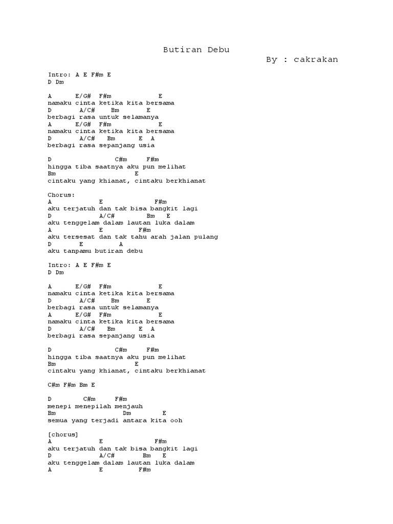 Check the best collection of Kunci gitar lagu menepi kunci dasar for desktop, laptop, tablet and mobile device. You can download them free. Butiran Debu By Cakrakan