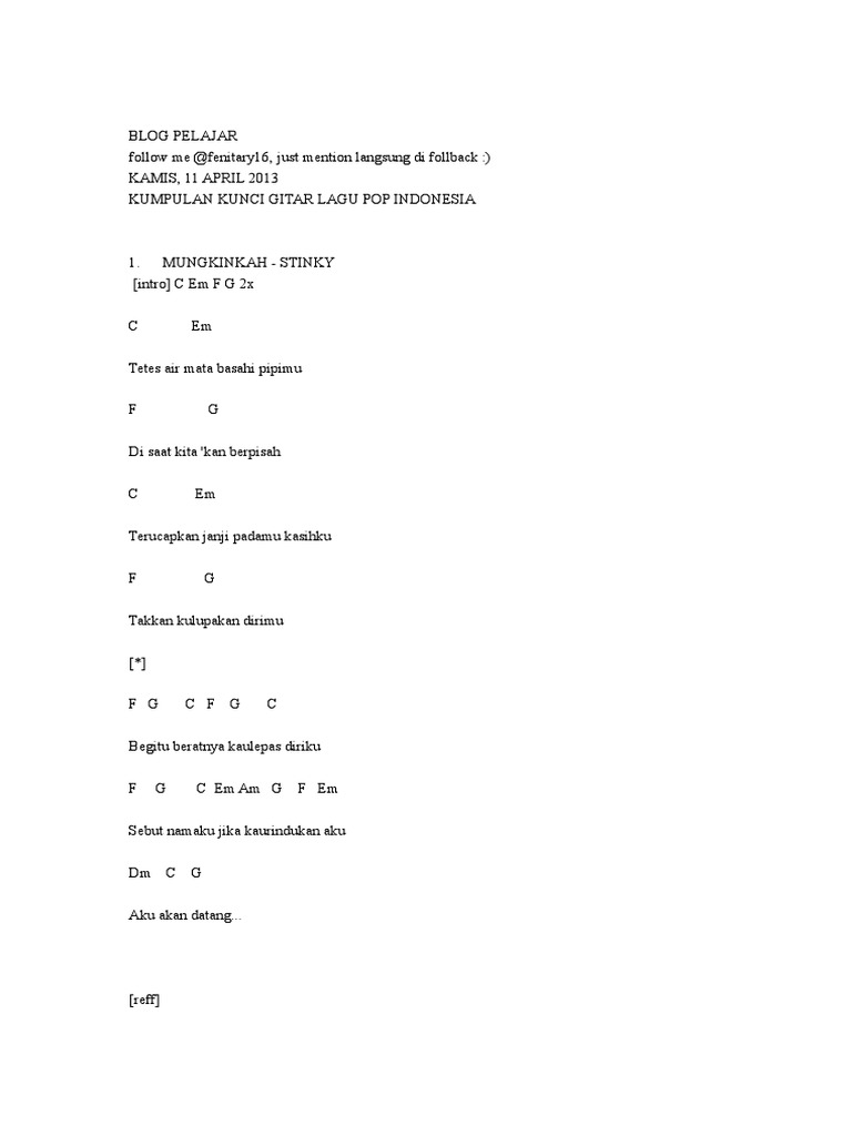 Check the best collection of Kunci gitar lagu mungkinkah kita kan selalu bersama for desktop, laptop, tablet and mobile device. You can download them free. Chord Dan Lirik Mungkinkah Stinky Kunci Gitar Dan Lirik