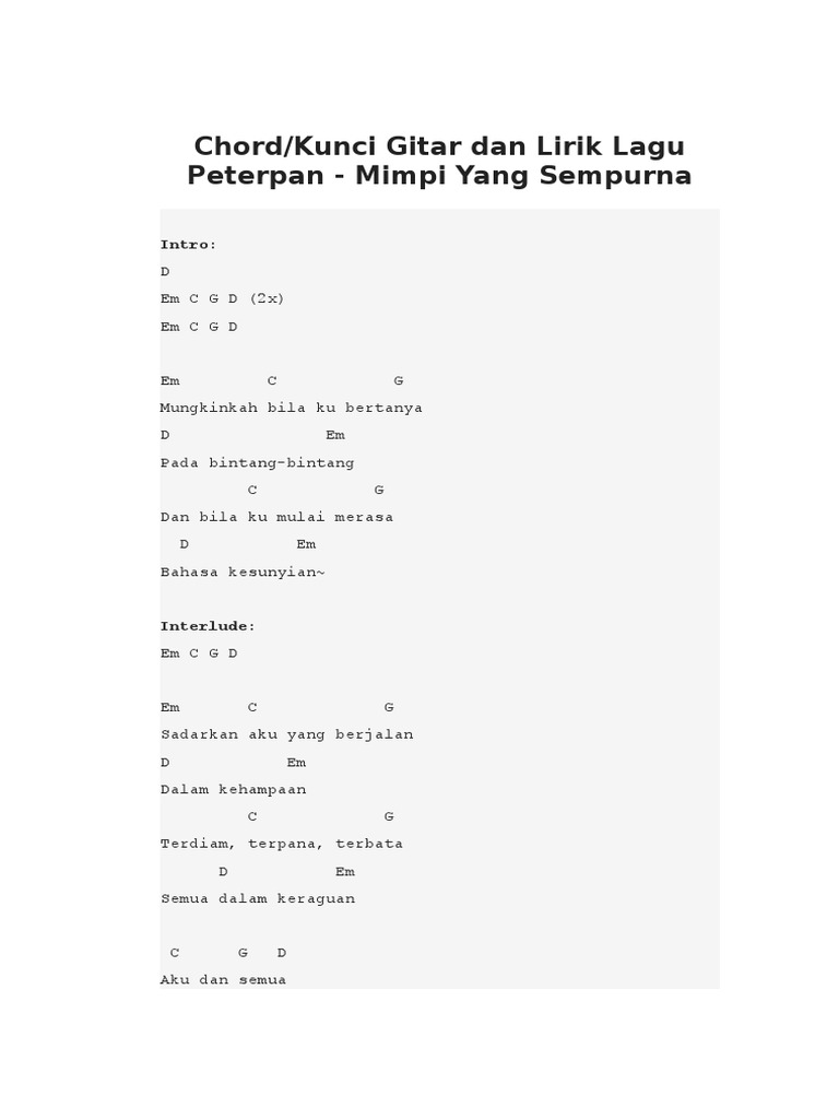 Check the best collection of Kunci gitar lagu mungkinkah peterpan for desktop, laptop, tablet and mobile device. You can download them free. Chord Peterpan Mimpi Yang Sempurna Kunci Dasar Gitar Lirik