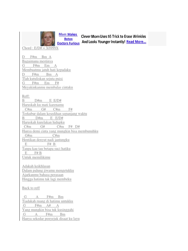 Check the best collection of Kunci gitar lagu nostalgia lama merasuk jiwaku for desktop, laptop, tablet and mobile device. You can download them free. Chord Ada Band Haruskah Ku Mati
