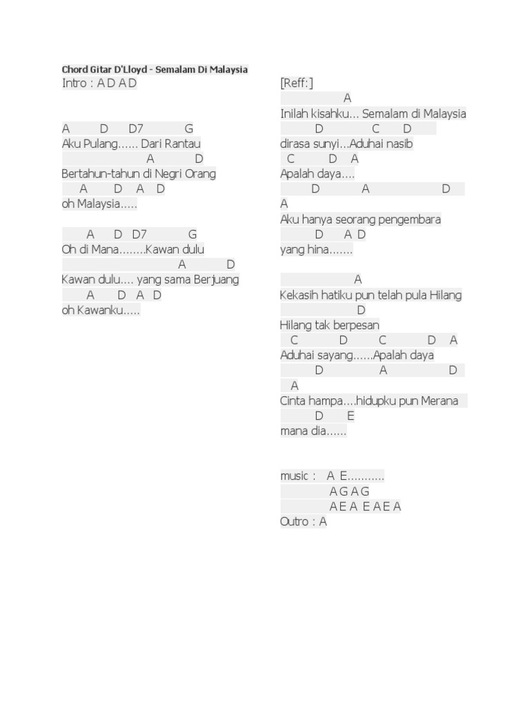 Chord Khord Gitar Lagu D Lloyd Semalam Di Malaysia Kunci Gitar