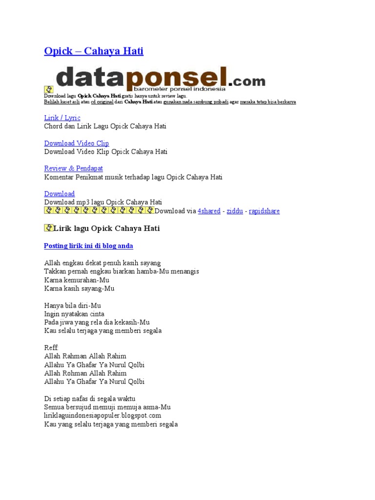 Lirik Lagu Opick Pdf Document