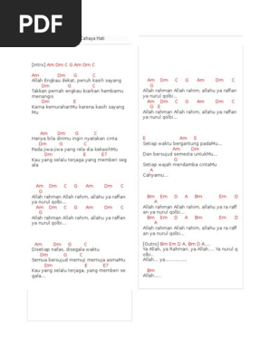 Am dm g c allah engkau dekat penuh kasih sayang dm g c takkan pernah engkau biarkan hambamu menangis dm e. Intro am dm c g am dm c am dm g c allah engkau dekat penuh kasih sayang dm g c takkan pernah engkau biarkan hambamu menangis dm e karna kemurahanmu karena kasih sayangmu am dm g c hanya bila dirimu ingin nyatakan cinta dm g c pada jiwa jiwa yang rela dia kekasihmu dm e e7 kau yang selalu terjaga yang memberi segala am dm c g am dm c g allah rahman allah rahim allahu ya raffan ya nurul qolbi.