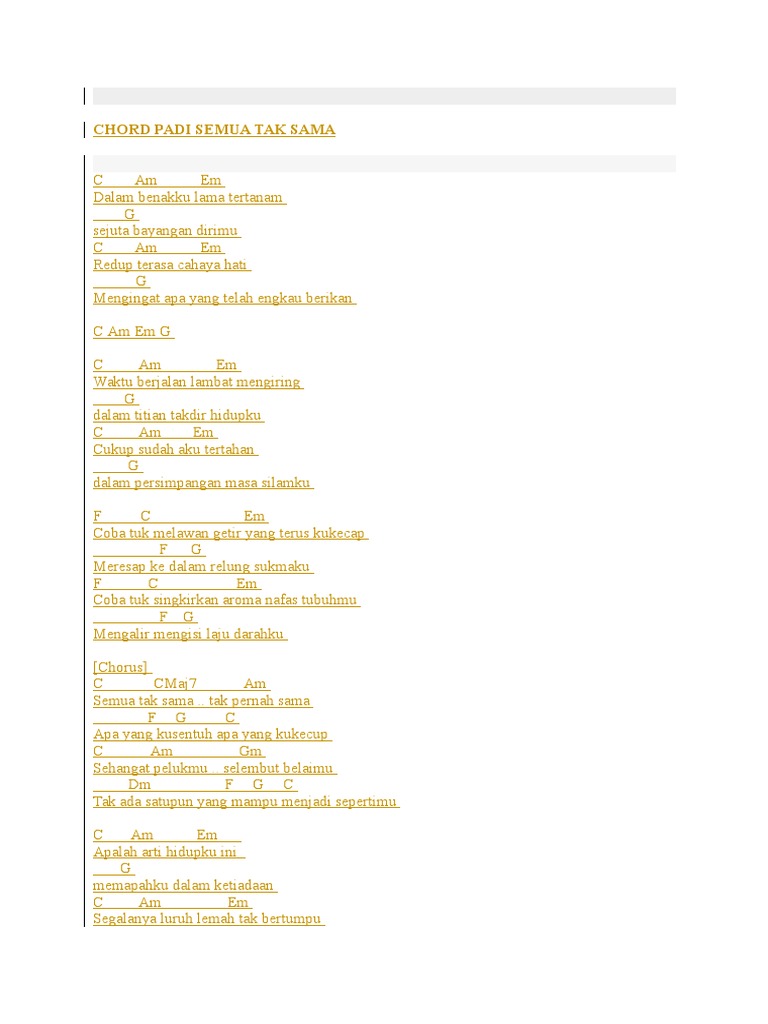 Hasil Gambar Untuk Chord Lagu Padi Semua Tak Sama