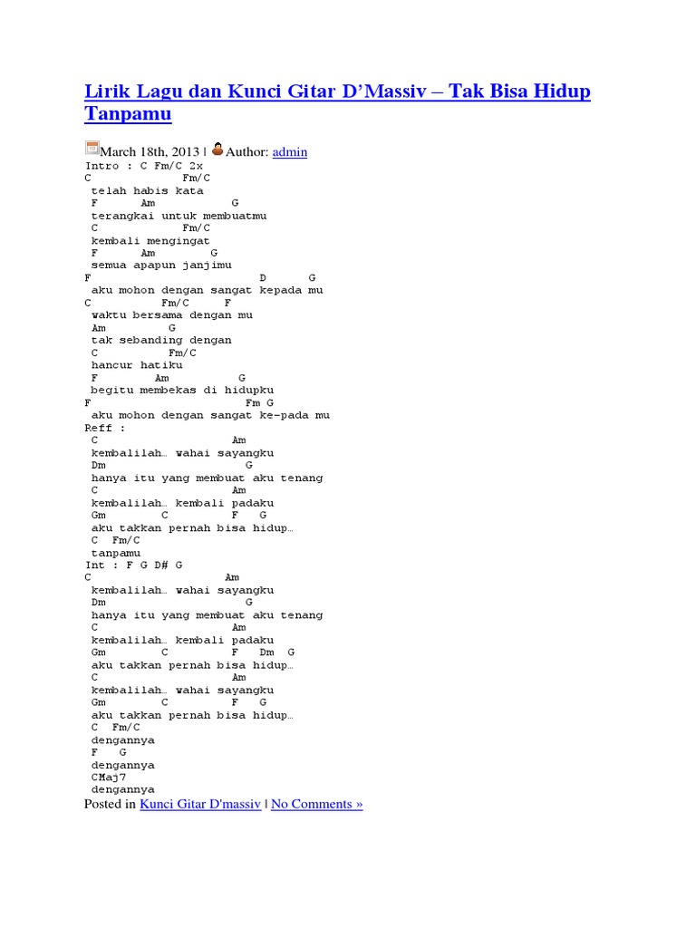 Lyrik Lagu Dan Kunci Gitar Lirik Lagu Dan Chord Gitar D Masiv
