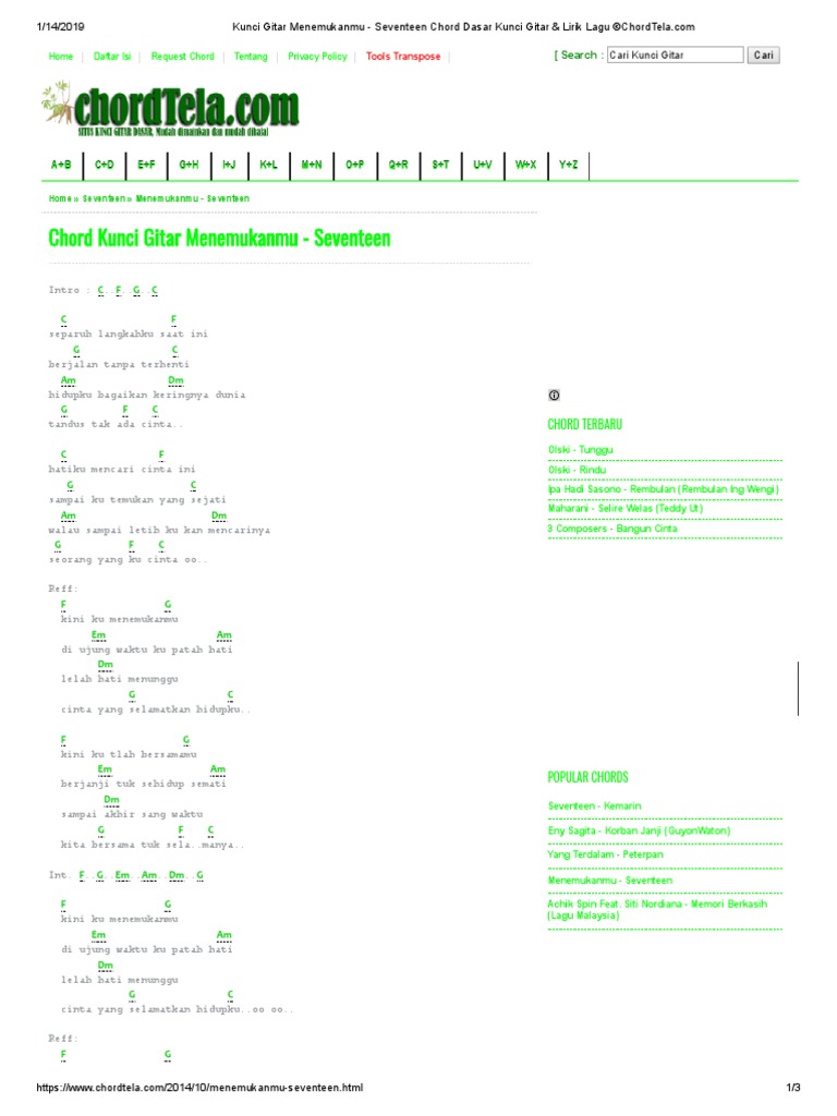 Check the best collection of Kunci gitar lagu pergilah kasih kejarlah keinginanmu chordtela for desktop, laptop, tablet and mobile device. You can download them free. Kunci Gitar Seventeen Menemukanmu