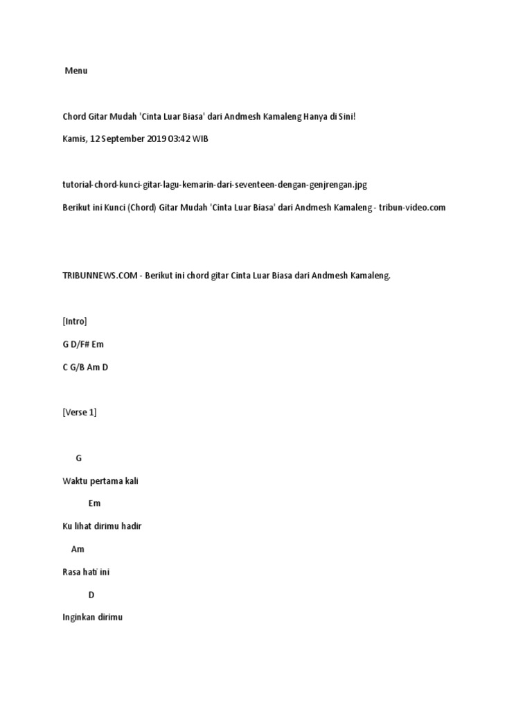 Chord Andmesh Cinta Luar Biasa Chord Kunci Chord Gitar 2020 02 08