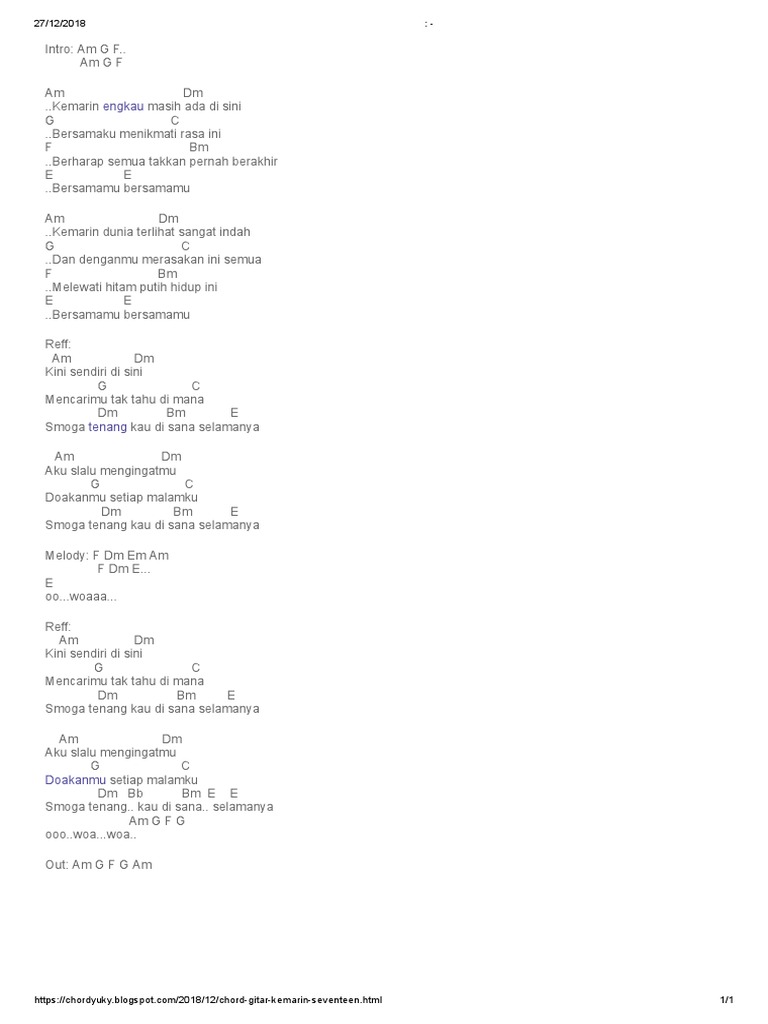Check the best collection of Lirik lagu dan kunci gitar kemarin engkau masih ada disini for desktop, laptop, tablet and mobile device. You can download them free. Kunci Gitar Seventeen Kemari Intro Am F Facebook